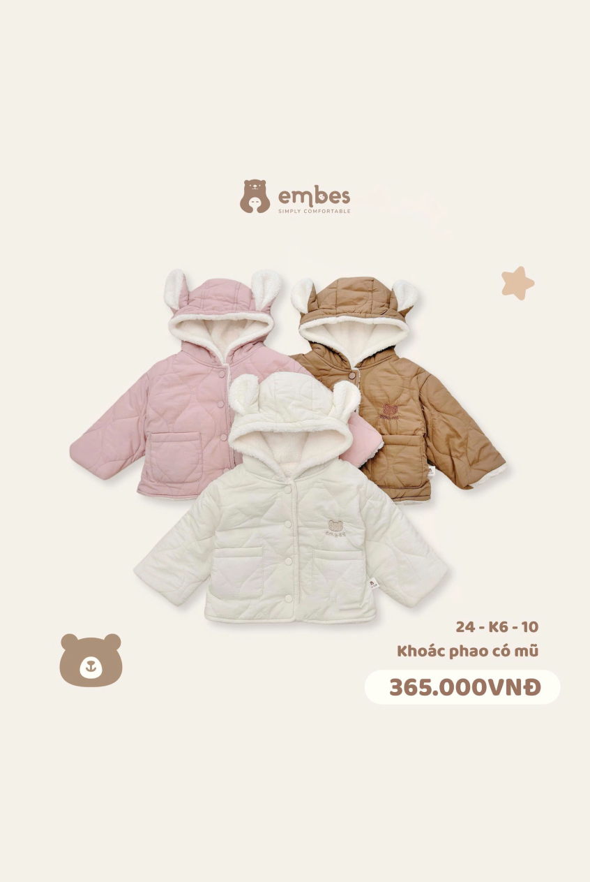 • Chất liệu cao cấp: Lớp vải ngoài chống gió hiệu quả, lớp lót trong siêu mềm mại, giúp giữ ấm hoàn hảo mà vẫn thoáng khí, không gây bí bách cho bé.